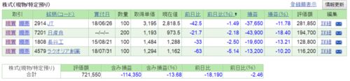 12/6木の日経平均は 417円安の21,501円と3日続落しました。 前日12/5のダウ平均は ジョージ・H・W・ブッシュ元大統領の死去により 国民追悼の為、休場でした。 資産状況は という結果でした。 ラクオリア(4579)ですが 機関の空売りはありませんでした。 今朝…