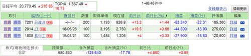 1/24木の日経平均は 19円安の20,574円と3日続落しました。 前日1/23のダウ平均は 171ドル高の24,575ドルと反発しました。 資産状況は という結果でした。 ラクオリア(4579)ですが 機関の空売りについて 1/23 モルガンスタンレー 27,600株 空売り という動き…
