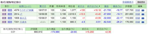 12/26水 資産状況は という結果でした。 JT(2914)下がってるなあ…