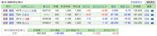 1/17木の日経平均は 40円安の20,402円と2日続落しました。 前日1/16のダウ平均は 141ドル高の24,207ドルと2日続伸しました。 資産状況は という結果でした。 それでは。