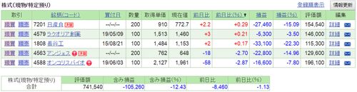 7/9火の日経平均は 43円高の21,565円と反発。 前日7/8のダウ平均は 115ドル安の26,806ドルと2日続落。 資産状況は という結果でした。 アンジェス(4563)ですが 18円安の648円でした。 大引け後のPTSでは 3.9円安の644.1円でした(23:59時点)。 以下、1分足。 …