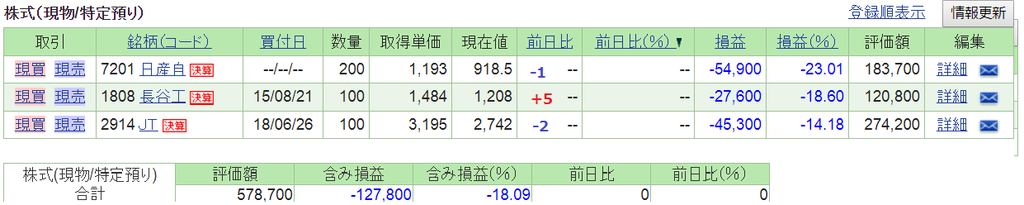 2019-01-30 2019.1.29(火) 資産状況 1/29火はインフルぽい症状がありダウンしてました。 次の日の朝にはなんともなかったので もう治ったようですw 1/29火の日経平均は 15円高の20,664円と反発しました。 前日1/28のダウ平均は 208ドル安の24,528ドルと反落しました。 資産状況は 手放したラクオリア(4579)は52円安でした。 たまたまいいタイミングで売れたみたいです。 ラクオリア(4579)ですが 機関の空売りについて 1/28 JPモルガン 500株 買い戻し 1/29 モルガンスタンレー 25,100株 空売り モルガンスタンレーの連続空売り記録は8日でストップですが売り残高はまだ増えていっています。 9日間で290,400株の空売りです。 それでは。 にほんブログ お名前.com Amazonクーポン